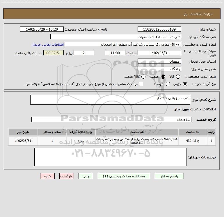 نام دستگاه خریدار:شرکت آب منطقه ای اصفهان