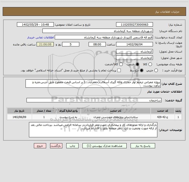 نام دستگاه خریدار:شهرداری منطقه سه کرمانشاه