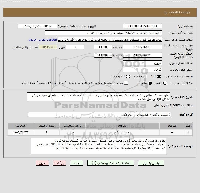 نام دستگاه خریدار:اداره کل زندان ها و اقدامات تامینی و تربیتی استان قزوین