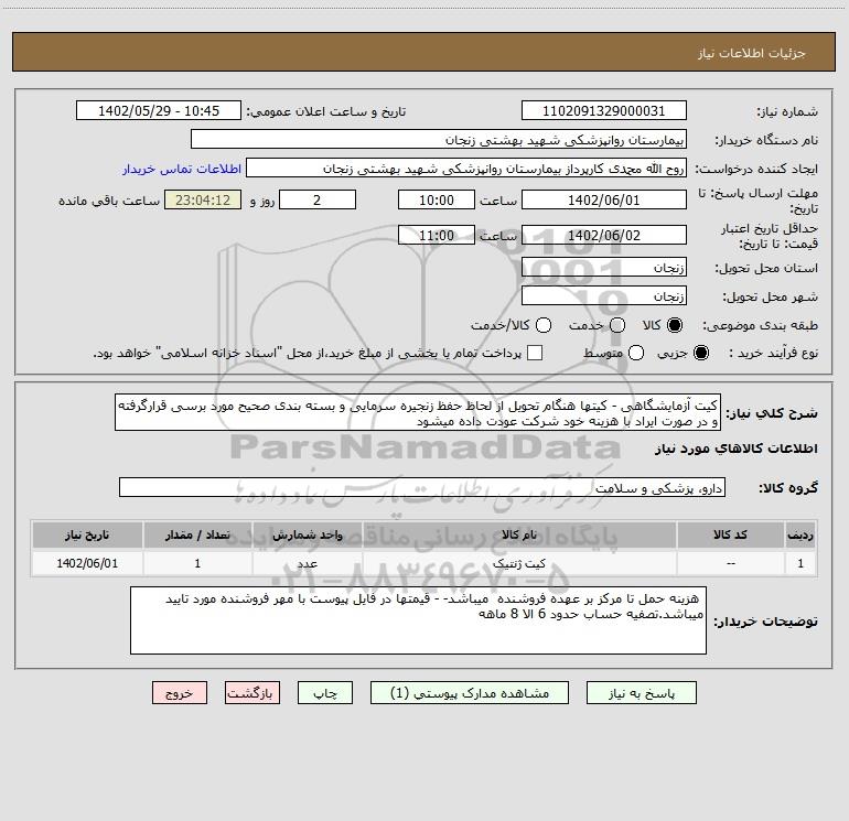 نام دستگاه خریدار:بیمارستان روانپزشکی شهید بهشتی زنجان