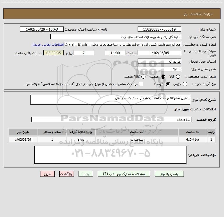 شرح کلی نیاز: تکمیل محوطه و ساختمان بخشداری دشت سر امل