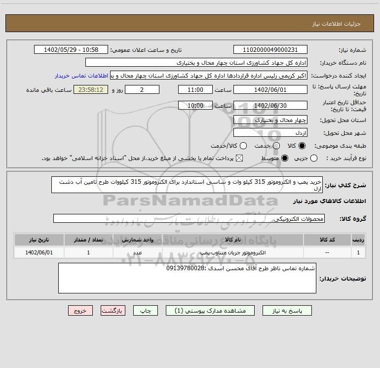 نام دستگاه خریدار:اداره کل جهاد کشاورزی استان چهار محال و بختیاری