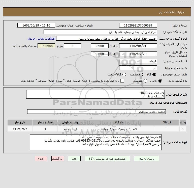 نام دستگاه خریدار:مرکز اموزش درمانی بیمارستان پاستور