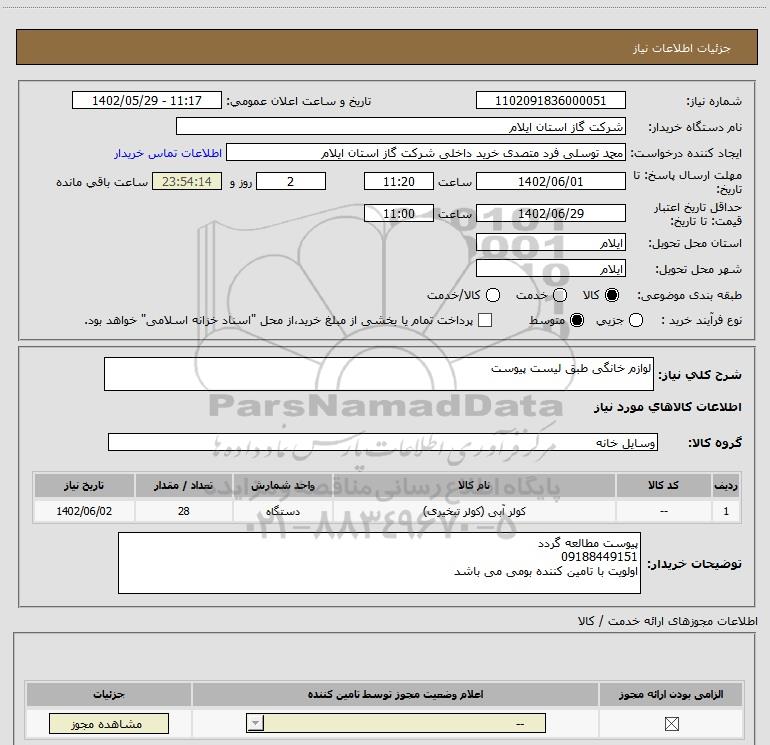 نام دستگاه خریدار:شرکت گاز استان ایلام