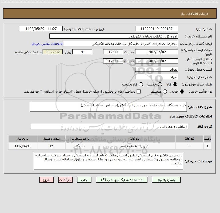 نام دستگاه خریدار:اداره کل ارتباطات وعلائم الکتریکی