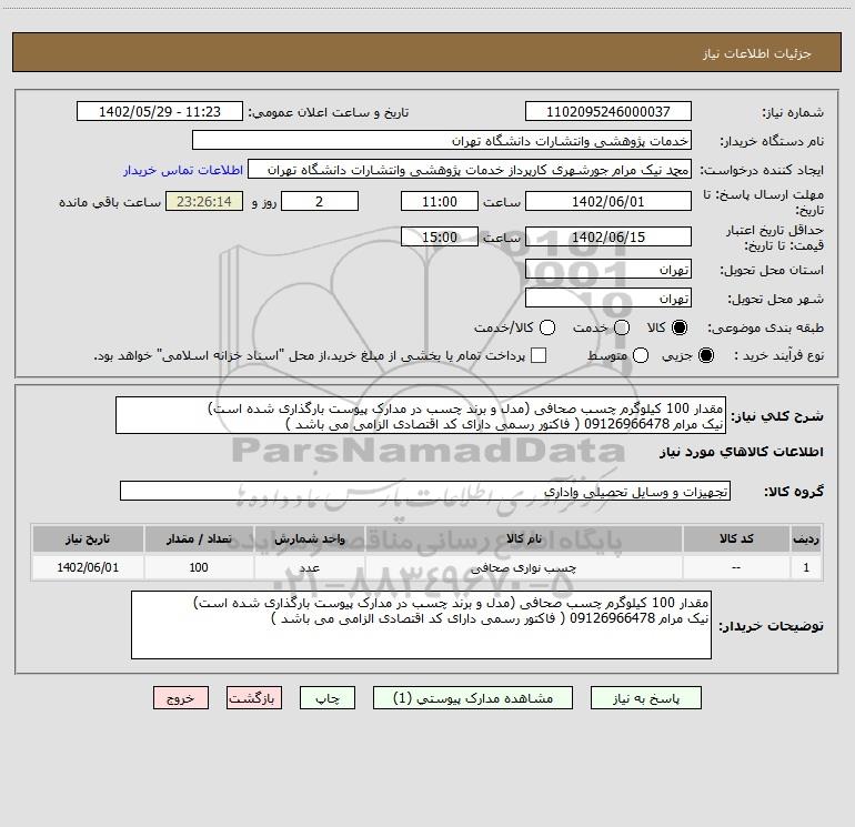نام دستگاه خریدار:خدمات پژوهشی وانتشارات دانشگاه تهران