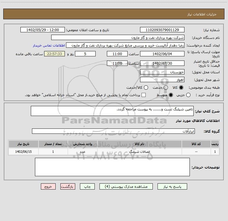 نام دستگاه خریدار:شرکت بهره برداری نفت و گاز مارون