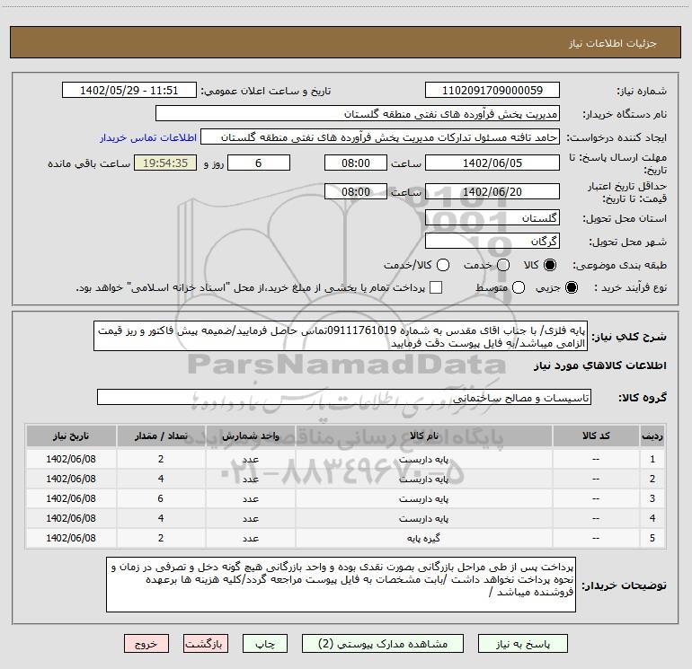 شرح کلی نیاز: پایه فلزی/ با جناب اقای مقدس به شماره 09111761019تماس حاصل فرمایید/ضمیمه پیش فاکتور و ریز قیمت الزامی میباشد/به فایل پیوست دقت فرمایید