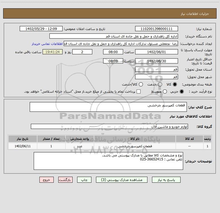 | 1 | -- | قطعات کمپرسور چرخشی | عدد | 1 | 1402/06/11 |
