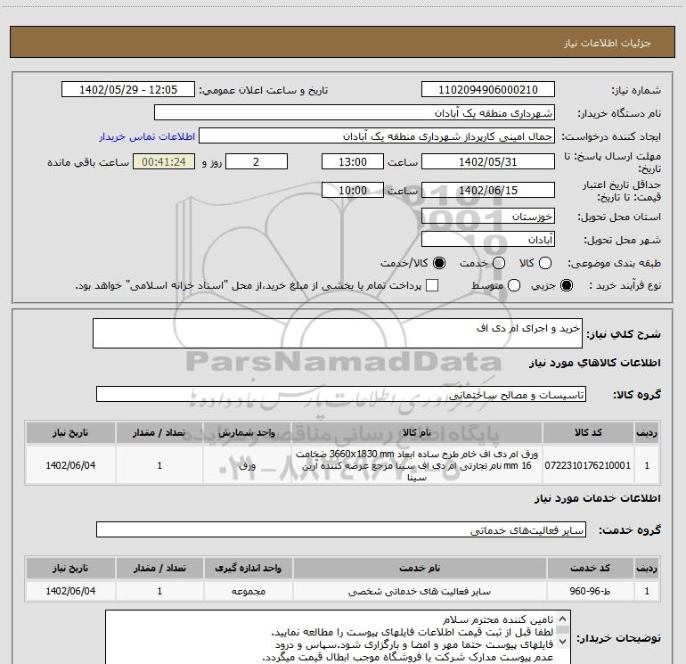 شرح کلی نیاز: خرید و اجرای ام دی اف