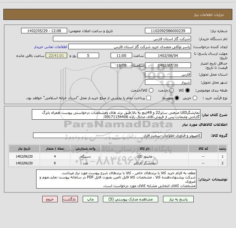 | 1 | -- | مانیتور LED | دستگاه | 4 | 1402/06/20 |