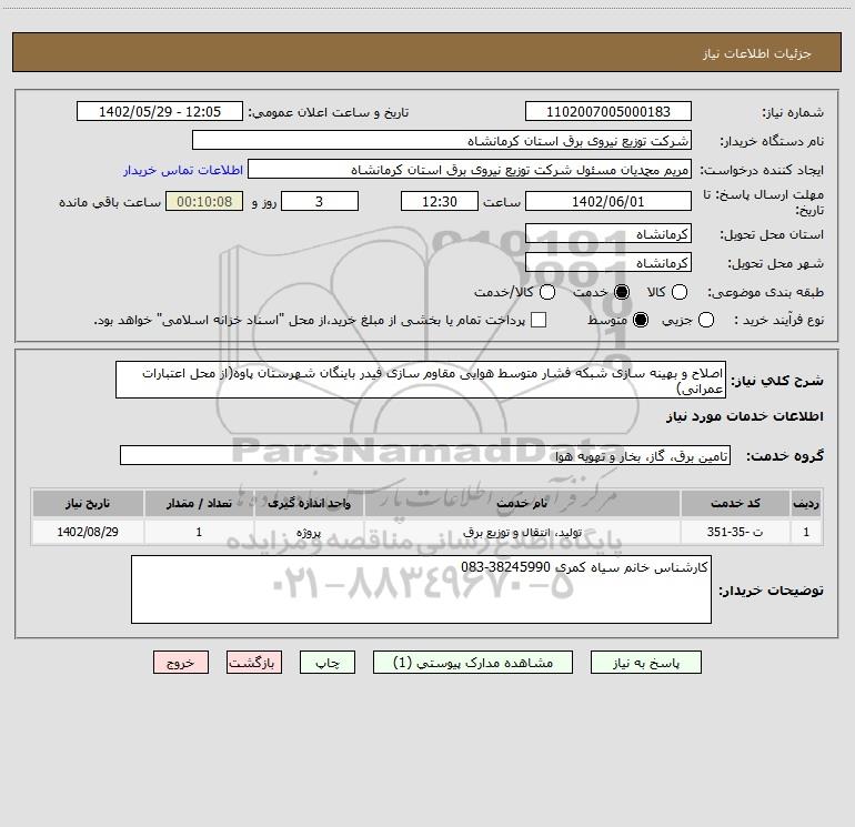 نام دستگاه خریدار:شرکت توزیع نیروی برق استان کرمانشاه