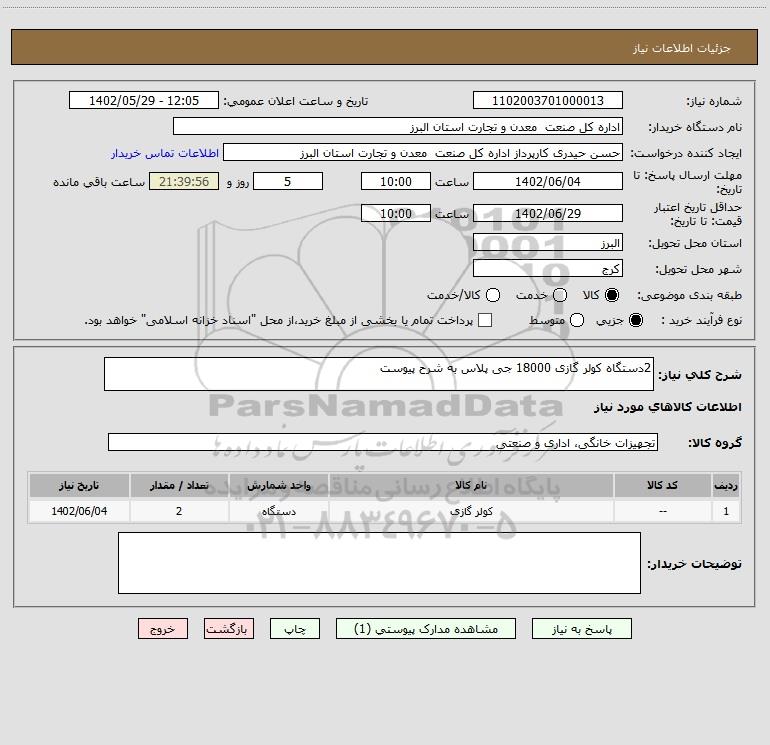 نام دستگاه خریدار:اداره کل صنعت معدن و تجارت استان البرز