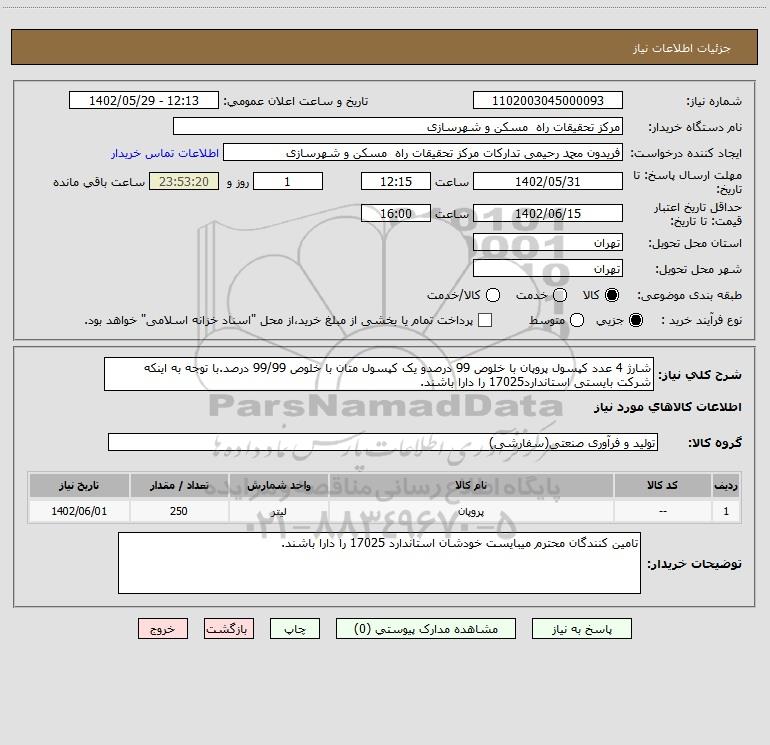 نام دستگاه خریدار:مرکز تحقیقات راه مسکن و شهرسازی