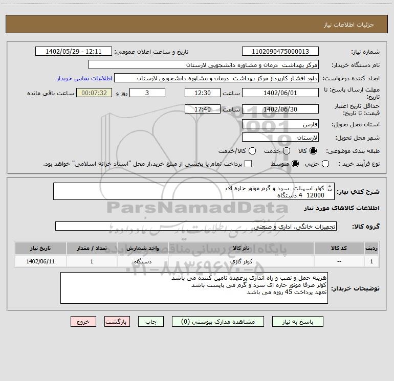نام دستگاه خریدار:مرکز بهداشت درمان و مشاوره دانشجویی لارستان