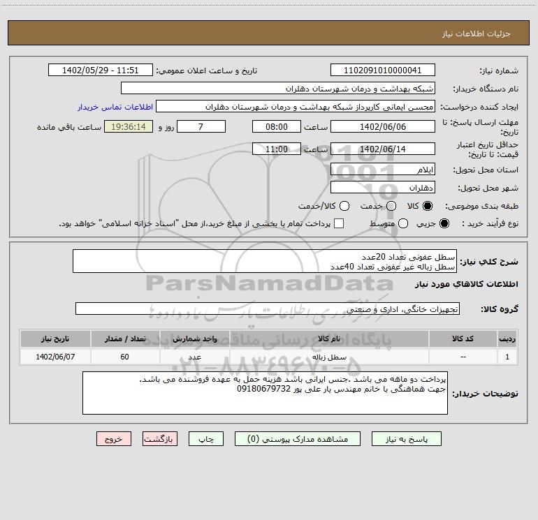 نام دستگاه خریدار:شبکه بهداشت و درمان شهرستان دهلران