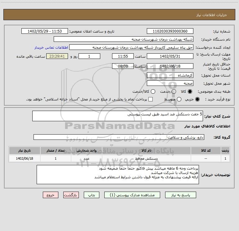 شرح کلی نیاز: 5 جفت دستکش ضد اسید طبق لیست پیوستی
