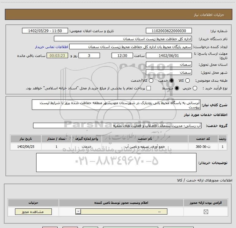 نام دستگاه خریدار:اداره کل حفاظت محیط زیست استان سمنان