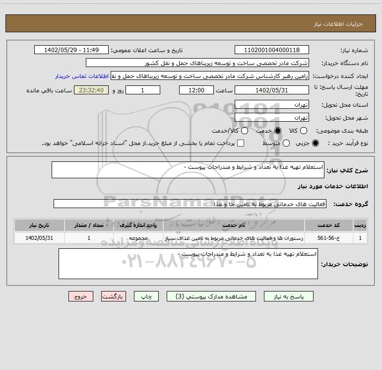 استعلام استعلام تهیه غذا به تعداد و شرایط و مندراجات پیوست -, استعلام استعلام تهیه غذا به تعداد و شرایط و مندراجات پیوست -