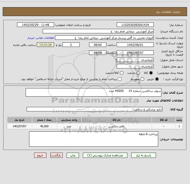 شرح کلی نیاز: سوند ساکشن شماره 14 40000 عدد