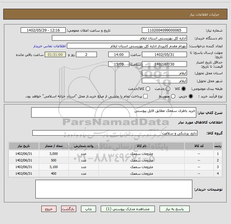 | 4 | -- | ملزومات سمعک | عدد | 400 | 1402/06/31 |