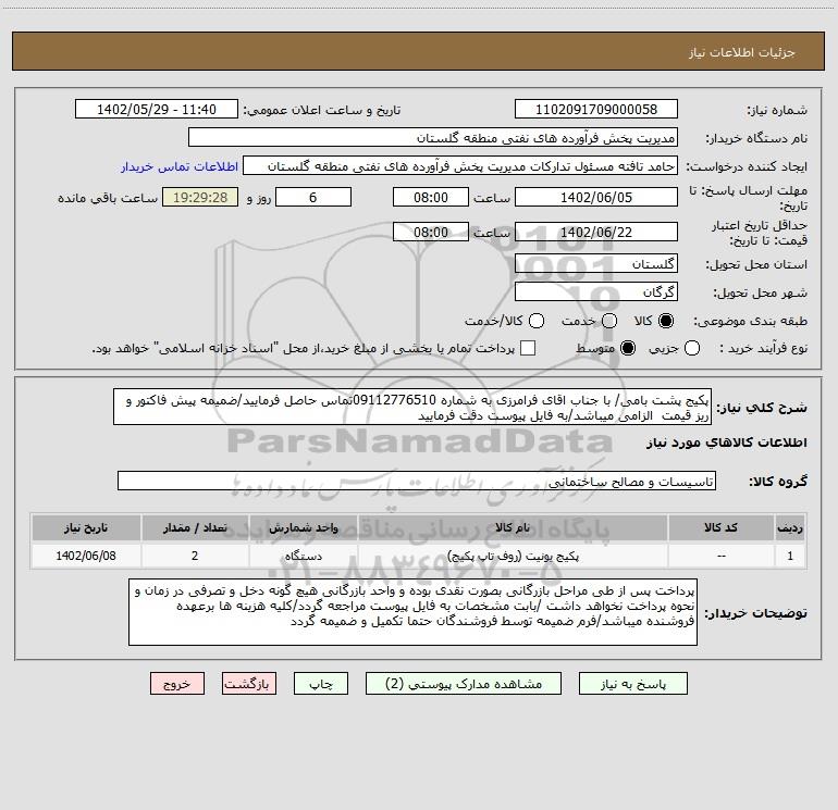 نام دستگاه خریدار:مدیریت پخش فرآورده های نفتی منطقه گلستان