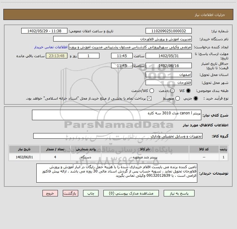 نام دستگاه خریدار:مدیریت اموزش و پرورش فلاورجان