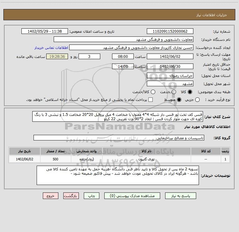 نام دستگاه خریدار:معاونت دانشجویی و فرهنگی مشهد