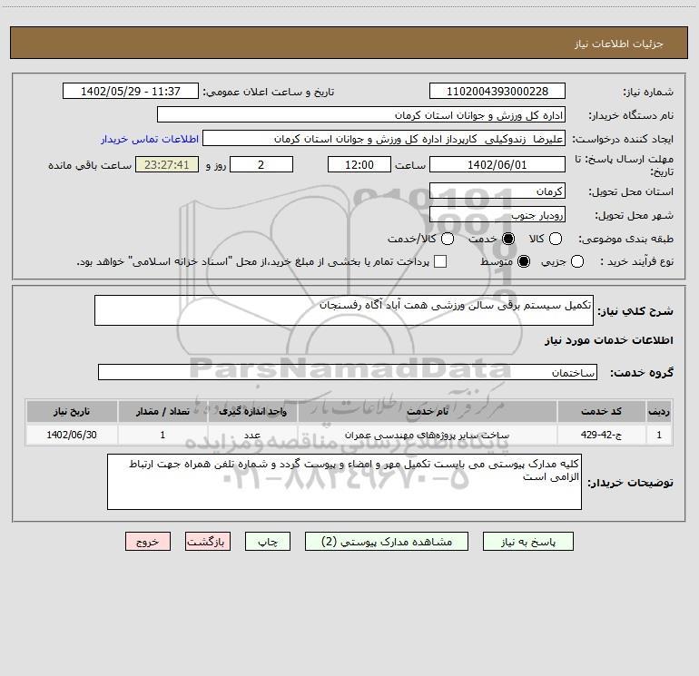 نام دستگاه خریدار:اداره کل ورزش و جوانان استان کرمان