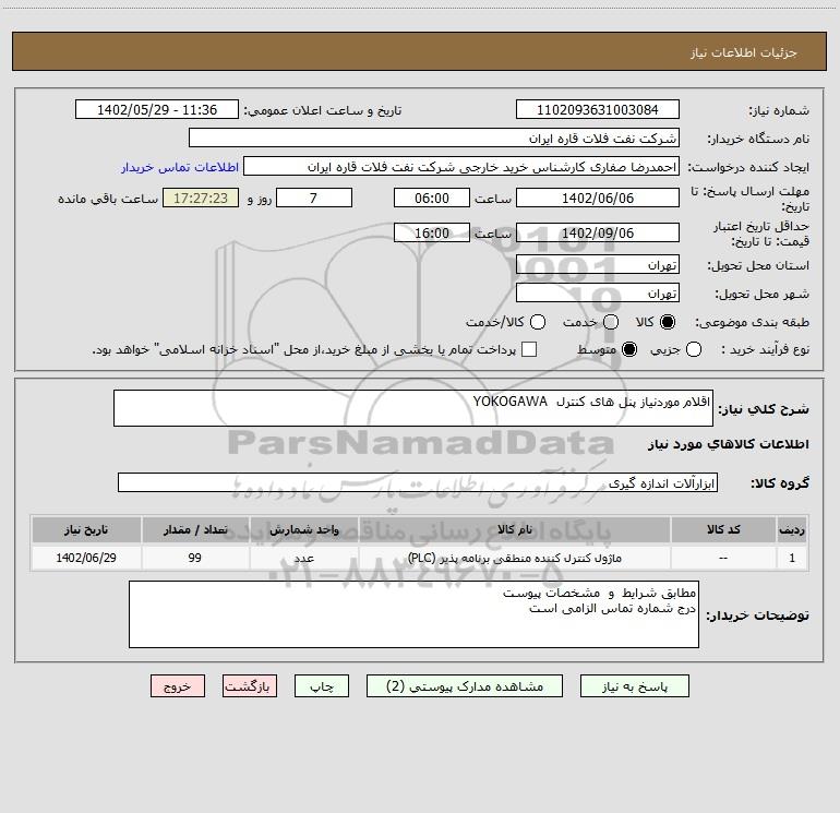 شرح کلی نیاز: اقلام موردنیاز پنل های کنترل YOKOGAWA