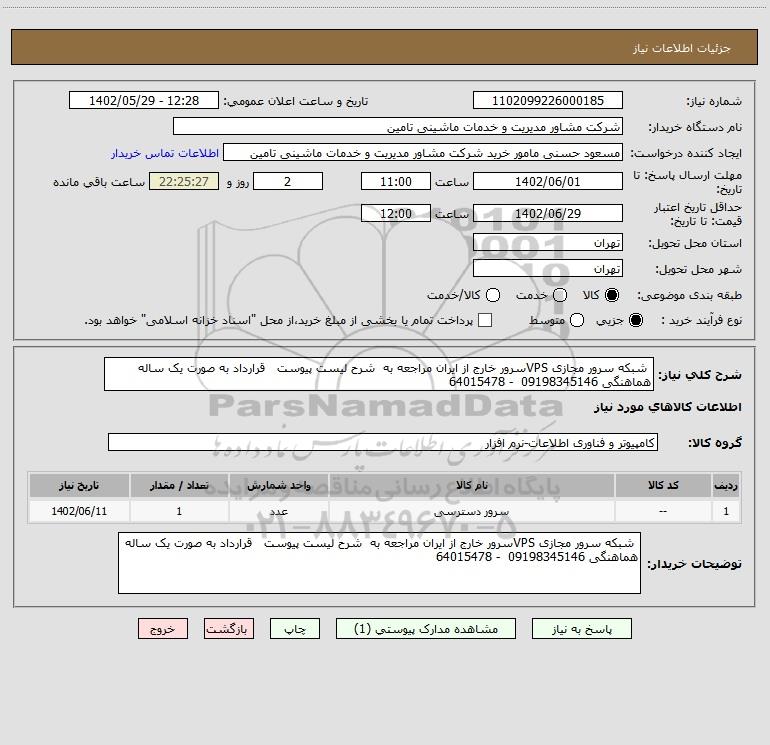 نام دستگاه خریدار:شرکت مشاور مدیریت و خدمات ماشینی تامین