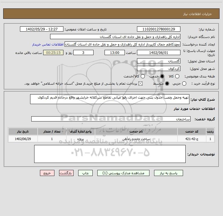 نام دستگاه خریدار:اداره کل راهداری و حمل و نقل جاده ای استان گلستان