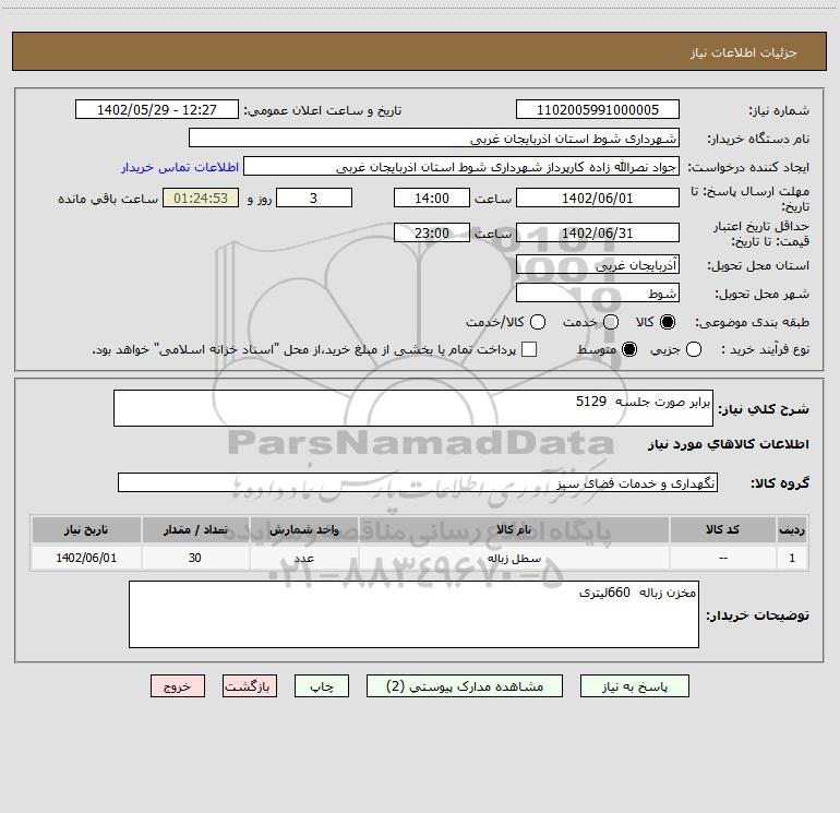 شرح کلی نیاز: برابر صورت جلسه 5129