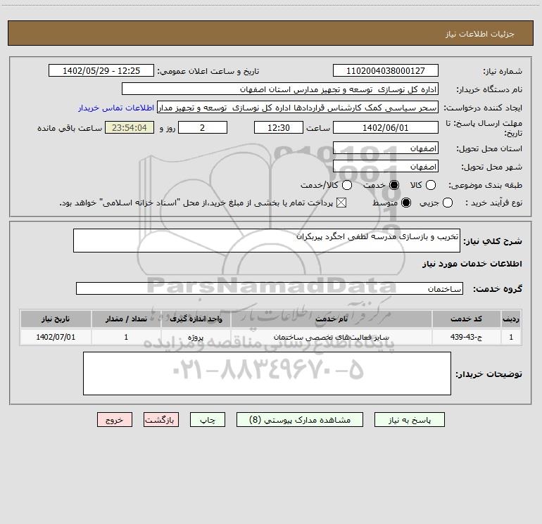 شرح کلی نیاز: تخریب و بازسازی مدرسه لطفی اجگرد پیربکران