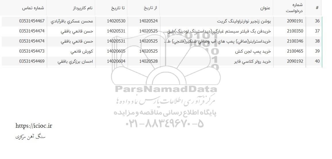 شماره درخواست عنوان  از تاریخ  تا تاریخ   نام کارپرداز   شماره تماس