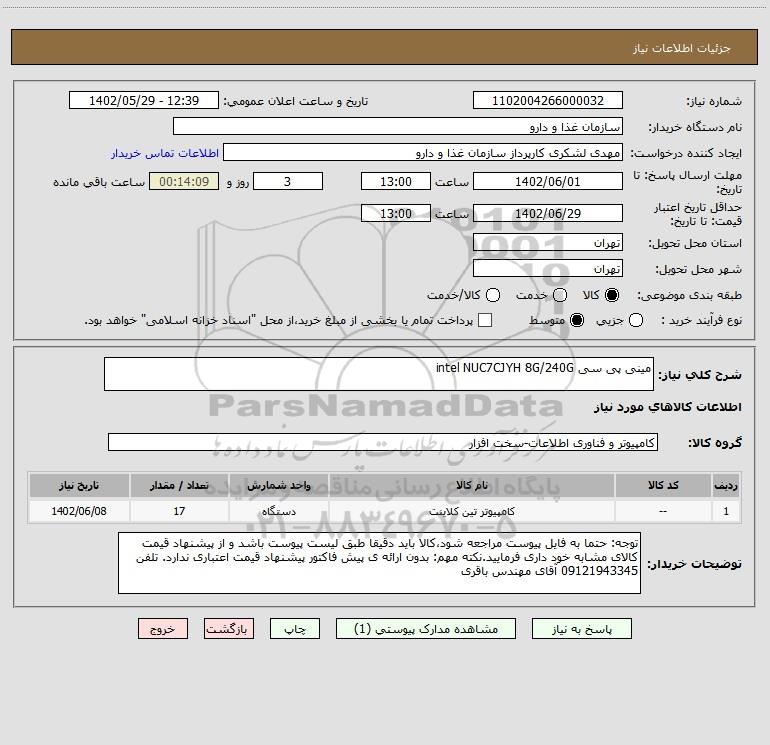 شرح کلی نیاز: مینی پی سی intel NUC7CJYH 8G/240G
