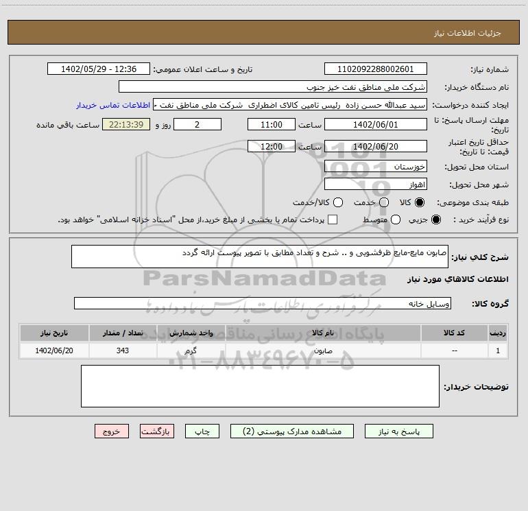 نام دستگاه خریدار:شرکت ملی مناطق نفت خیز جنوب