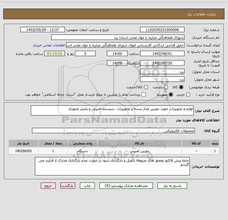 نام دستگاه خریدار:شورای هماهنگی مبارزه با مواد مخدر استان یزد