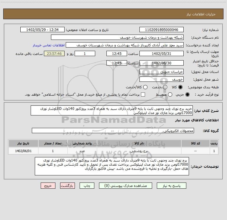 نام دستگاه خریدار:شبکه بهداشت و درمان شهرستان خوسف