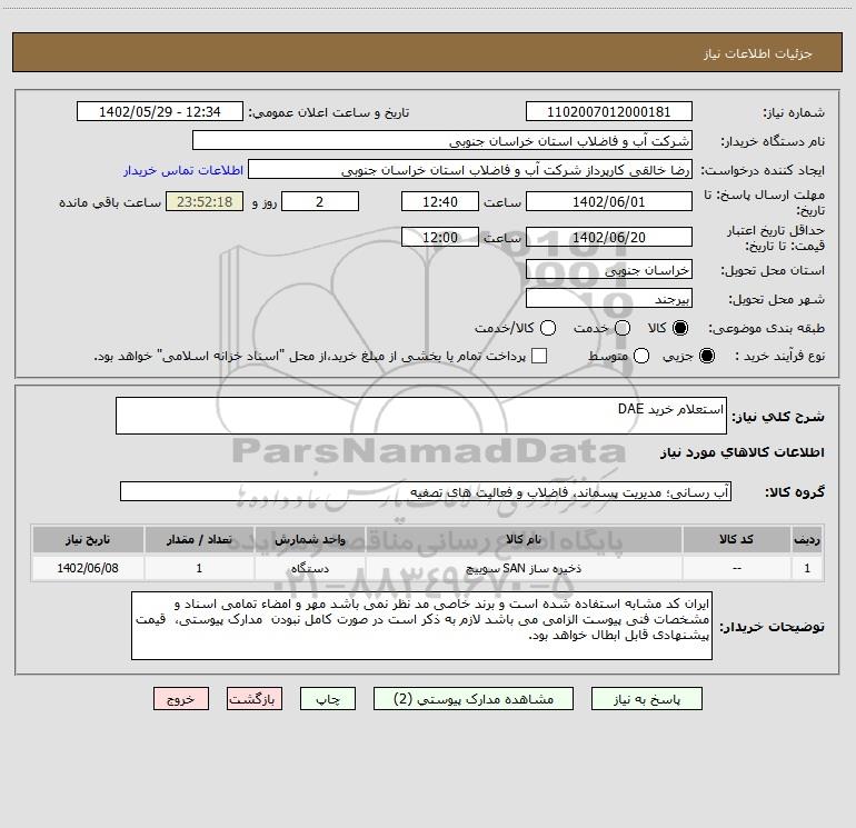 نام دستگاه خریدار:شرکت آب و فاضلاب استان خراسان جنوبی