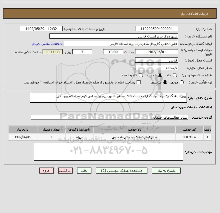شرح کلی نیاز: پروژه لبه گذاری و جدول گذاری خیابان های سطح شهر بیرم بر اساس فرم استعلام پیوستی