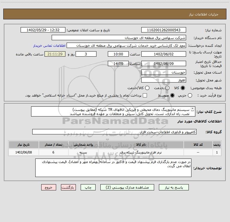 نام دستگاه خریدار:شرکت سهامی برق منطقه ای خوزستان