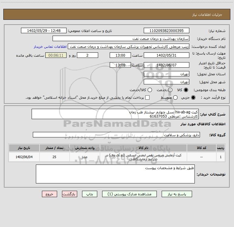 شرح کلی نیاز: کیت hiv-ab-ag نسل چهارم -پیشتاز طب زمان