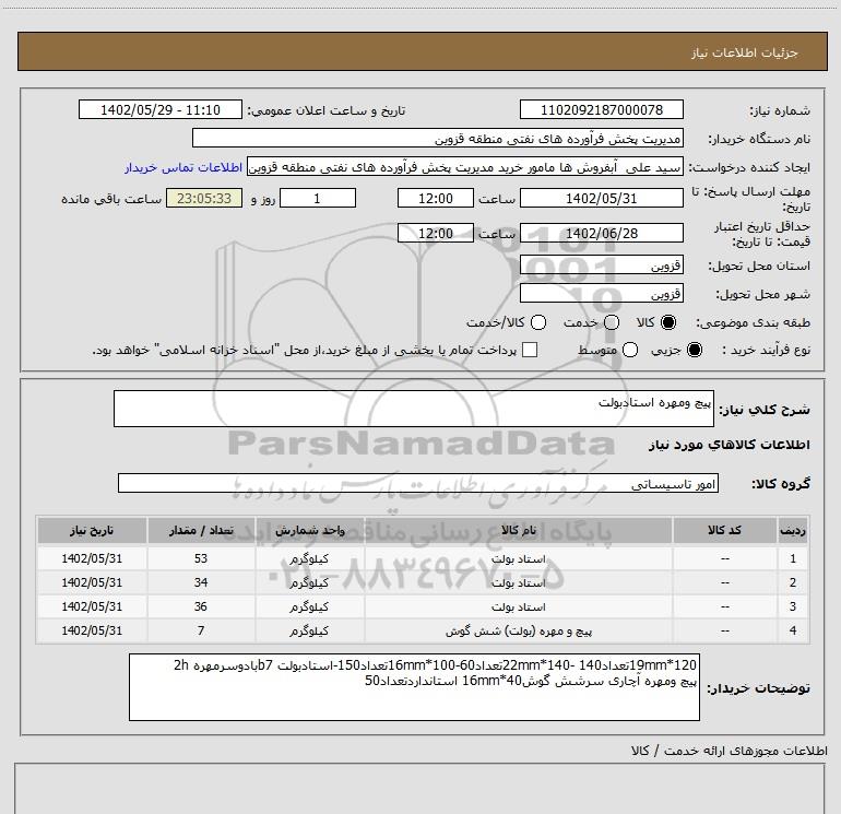 استعلام پیچ ومهره استادبولت, استعلام پیچ ومهره استادبولت