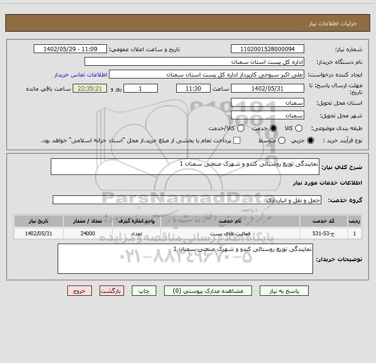 نام دستگاه خریدار:اداره کل پست استان سمنان
