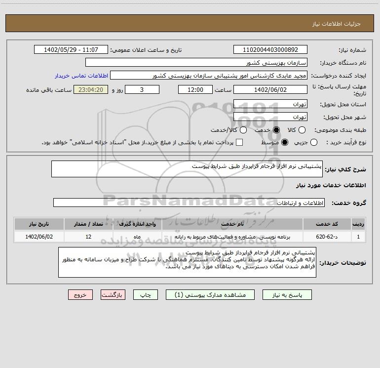 شرح کلی نیاز: پشتیبانی نرم افزار فرجام فراپرداز طبق شرایط پیوست