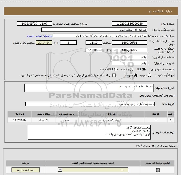 شرح کلی نیاز: تنظیفات طبق لیست پیوست