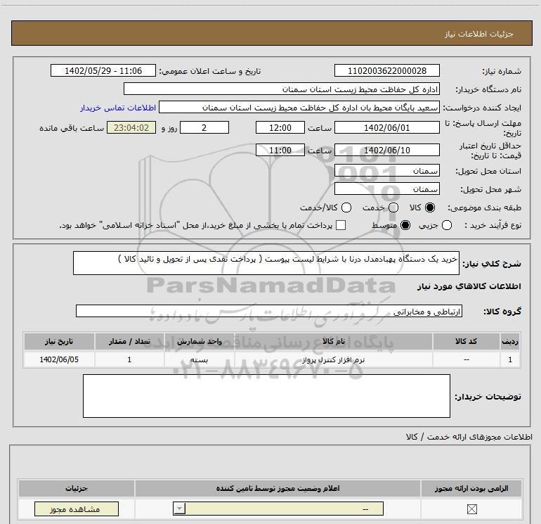 نام دستگاه خریدار:اداره کل حفاظت محیط زیست استان سمنان