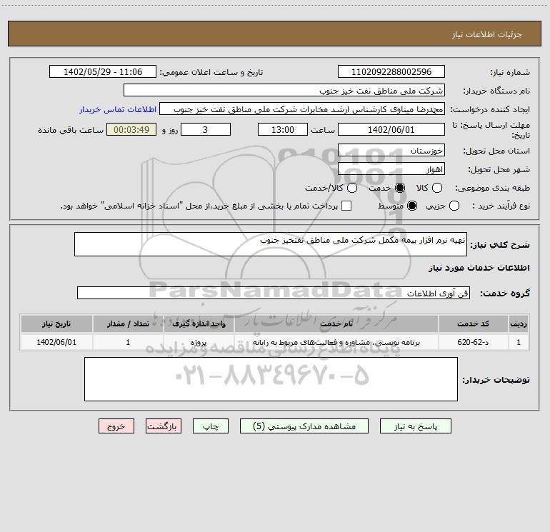 شرح کلی نیاز: تهیه نرم افزار بیمه مکمل شرکت ملی مناطق نفتخیز جنوب
