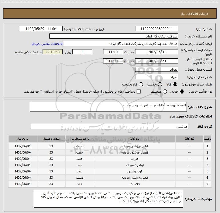 شرح کلی نیاز: البسه ورزشی آقایان بر اساس شرح پیوست